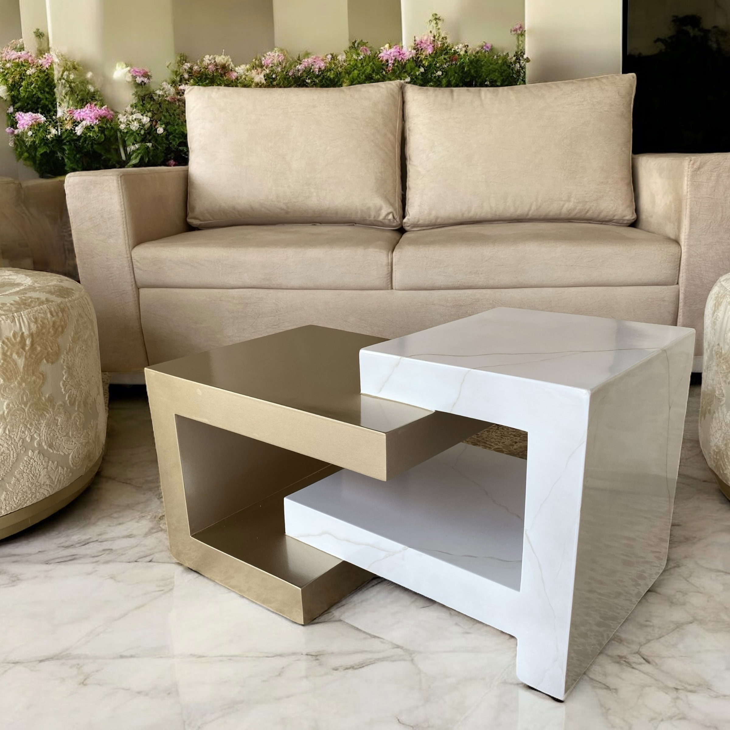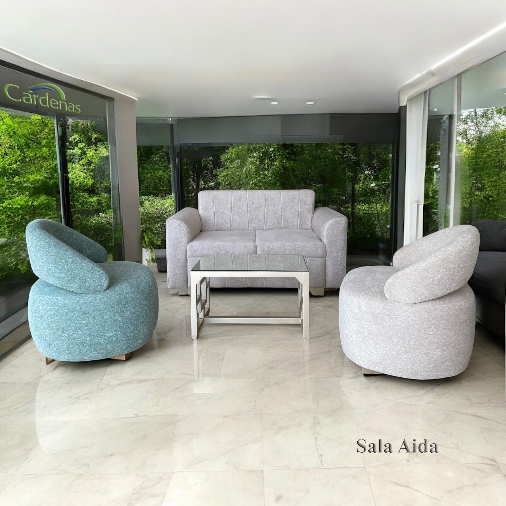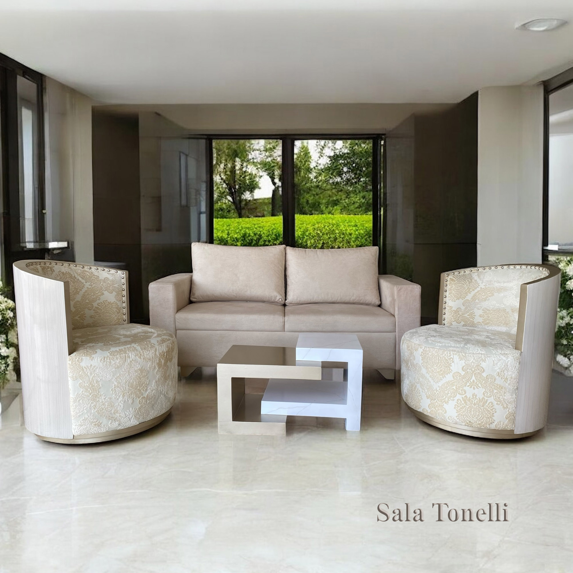 Sofá Bruno, butaca Victory, puff Victory y mesa Rombo